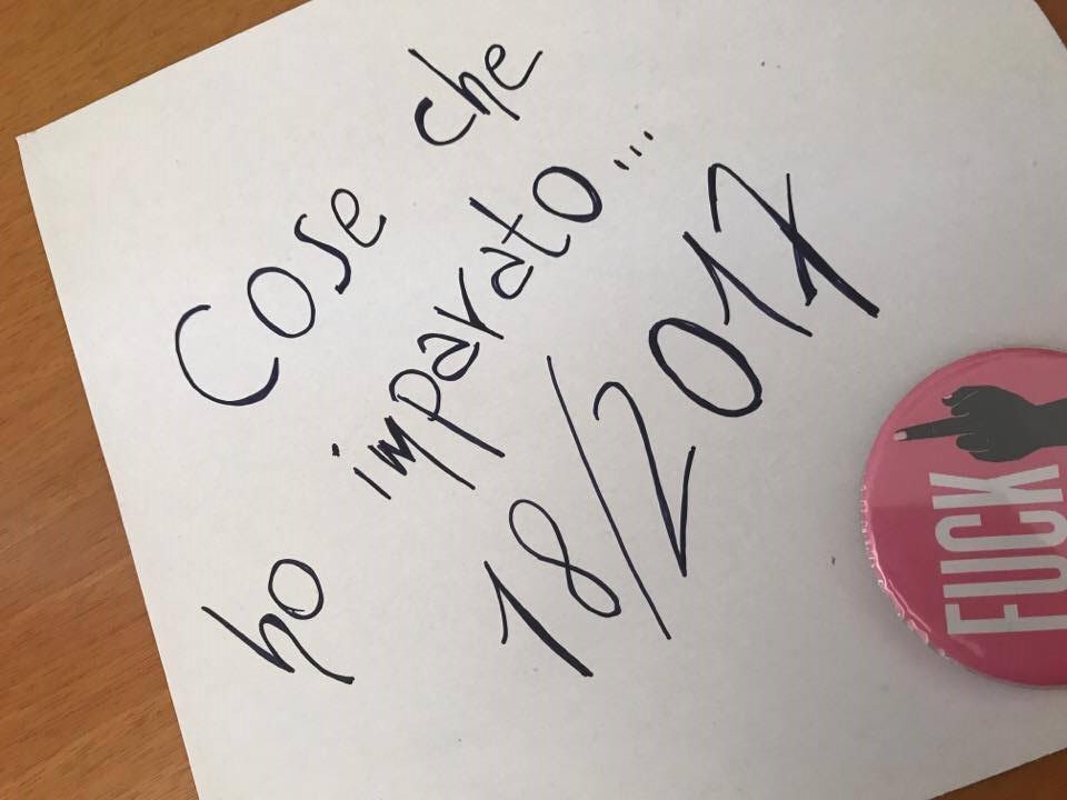 E insomma, niente, ecco quello che ho imparato questa settimana. Che io non sono un cazzo di nessuno, non sarò mai un cazzo di nessuno, ma so che cos’è l’educazione e il rispetto e con queste armi mi son fatta strada fin qui: che non sarà molta, ma ho la stima di chi mi conosce e questo basta.