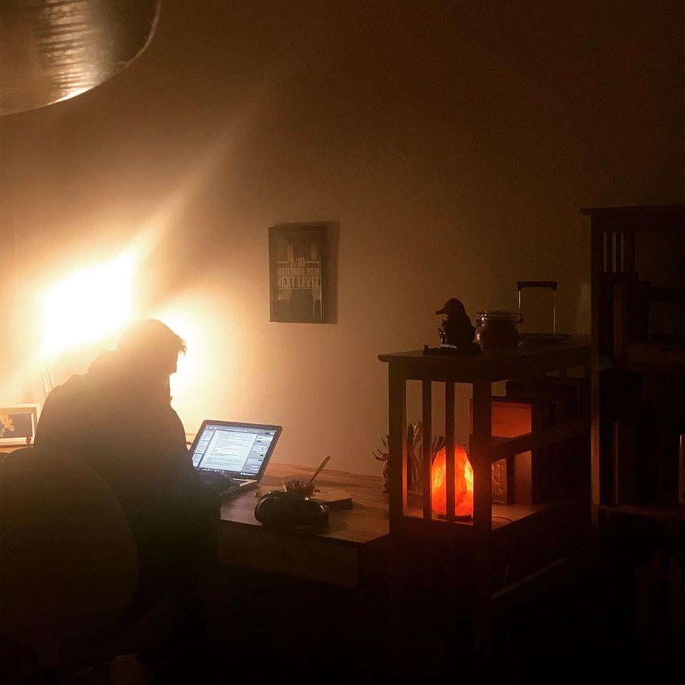 È quasi ora di cena. Mi reco nel suo studio e lo sorprendo così. Di solito, è sdraiato a riposare, questa chemio lo sfinisce. Ma non oggi, non ora che ha la pausa clinica dalla cura.